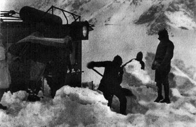 1931 Locomotora obstaculizada por temporal de nieve. Los Andes