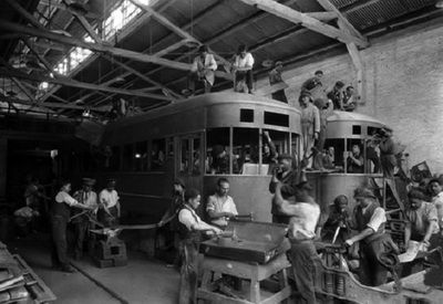 1927 Restauración tranvías en el taller de la Chilean Electric Tranway & Light Company
