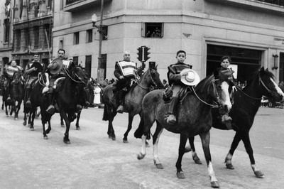 1955 Desfile de Huasos. Honores al Capitán Arturo Prat Chacón. Valparaíso