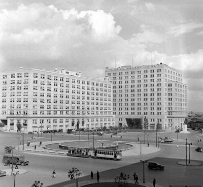 1941 Plaza Bulnes. Tranvias. Santiago