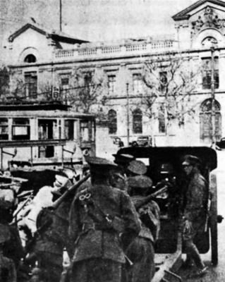 1938 Seguro obrero tropas reg. Tacna frente a la Universidad de Chile