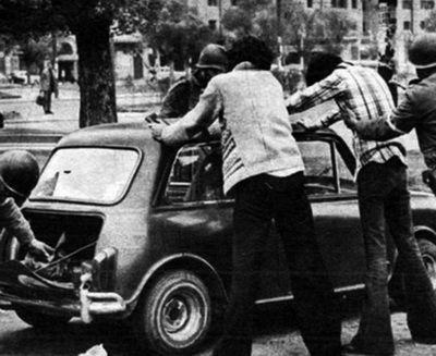 1973 Golpe de Estado. Militares revisando autos y personas