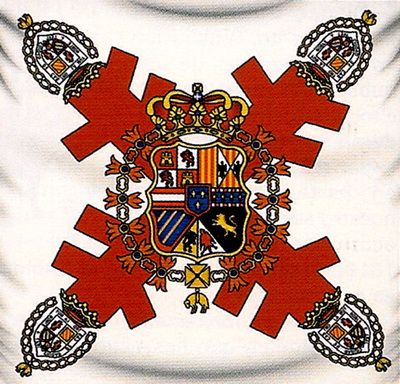 Es de color blanco, lleva la cruz de San Andrés y sobre ella un escudo y lo rodea el collar de la insigne Orden del Toison de Oro.