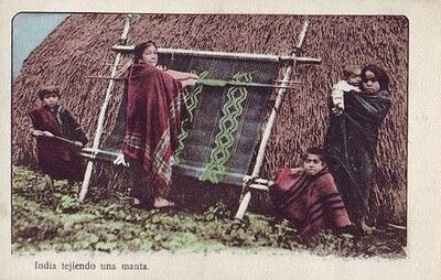 1920. Mapuche tejiendo una manta