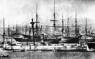 Huáscar en Valparaíso, después de ser capturado en el combate de Angamos.