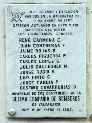 2010 Placa 10ª cia bomberos desastre 1953, Valparaíso