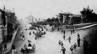 Ejercicios de Bomberos en Plaza de Armas, Ancud
