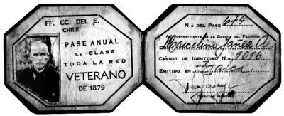 Ejército. Veterano de la GdP, pase de locomoción. Marcelino Yañéz A