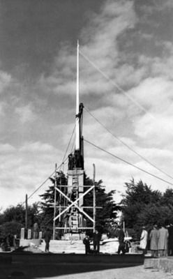 1945 Levantando asta de bandera Plaza de Armas. Punta Arenas